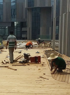 木質(zhì)座椅打造一片休憩的空間,布藝的抱枕,溫馨的燈光,給人內(nèi)心充盈的舒適和溫暖感覺(jué)!置身其中,放松心情,整個(gè)人都沉靜下來(lái)!自家若有個(gè)大庭院,木平臺(tái)的規(guī)劃讓花園更具人文氣息,木地板、木柵欄、木樓梯、木亭廊……起到藝術(shù)的裝飾作用,同時(shí)布置一些照明燈具,夜晚的庭院更顯沉穩(wěn)和品味。 防腐木產(chǎn)品誰(shuí)來(lái)施工? 庭院剛施工完成,柳岸木的葡萄架開(kāi)裂了?  開(kāi)車(chē)去現(xiàn)場(chǎng)看了一下,做好的葡萄架木質(zhì)很松、裂口很大,可以確定開(kāi)裂的原因:用的不是柳桉而是松木的一種,但是具體是哪一類(lèi)松木也分辨不出來(lái),裂縫產(chǎn)生主要原因是木頭沒(méi)有烘干,含的水分很多,經(jīng)過(guò)風(fēng)吹日曬,木頭中的水分蒸發(fā)發(fā)生收縮變形而產(chǎn)生裂縫,把木頭換掉基本是不可能了,唯一的解決辦法就是等裂縫穩(wěn)定以后用膩?zhàn)犹顫M(mǎn)重新做油漆。  事情解決了,正好業(yè)主也在,就問(wèn)他簡(jiǎn)單溝通了下,了解了一下情況,幫他做花園的是找上門(mén)來(lái)的一個(gè)施工隊(duì),柳桉防腐木地板3公分厚280元/平方,葡萄架報(bào)價(jià)500元/平方,就業(yè)主算了一筆賬,正宗柳桉木現(xiàn)在市場(chǎng)價(jià)按5000元一立方計(jì)算,不算損耗,一立方可以做33個(gè)平方地板,每平方是150元,木工安裝費(fèi)市場(chǎng)行情是60元/平方,油漆30元/平方,加上地板下的木楞50元/平方加起來(lái)就是290元/平方,再加上損耗和正常的公司利潤(rùn),280元/平方的柳桉防腐木地板怎么能做的出來(lái)呢